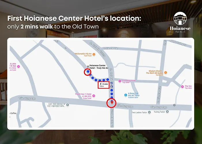 El alojamiento está a 2 km del centro de Hoi An. Se tarda 19 minutos a pie en llegar a Hội An. Los huéspedes podrán disfrutar de la cocina europea en el Radio Dublin Irish Pub, que se encuentra a 7 minutos caminando del sitio.