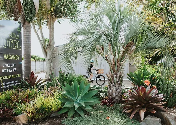 Offering a sundeck and barbecue grills, and views of the garden, Peninsula Motel Whitianga is located 2.8 km from the Stu's Wild Pig Farm. There is parking on site and Wi-Fi in public areas.